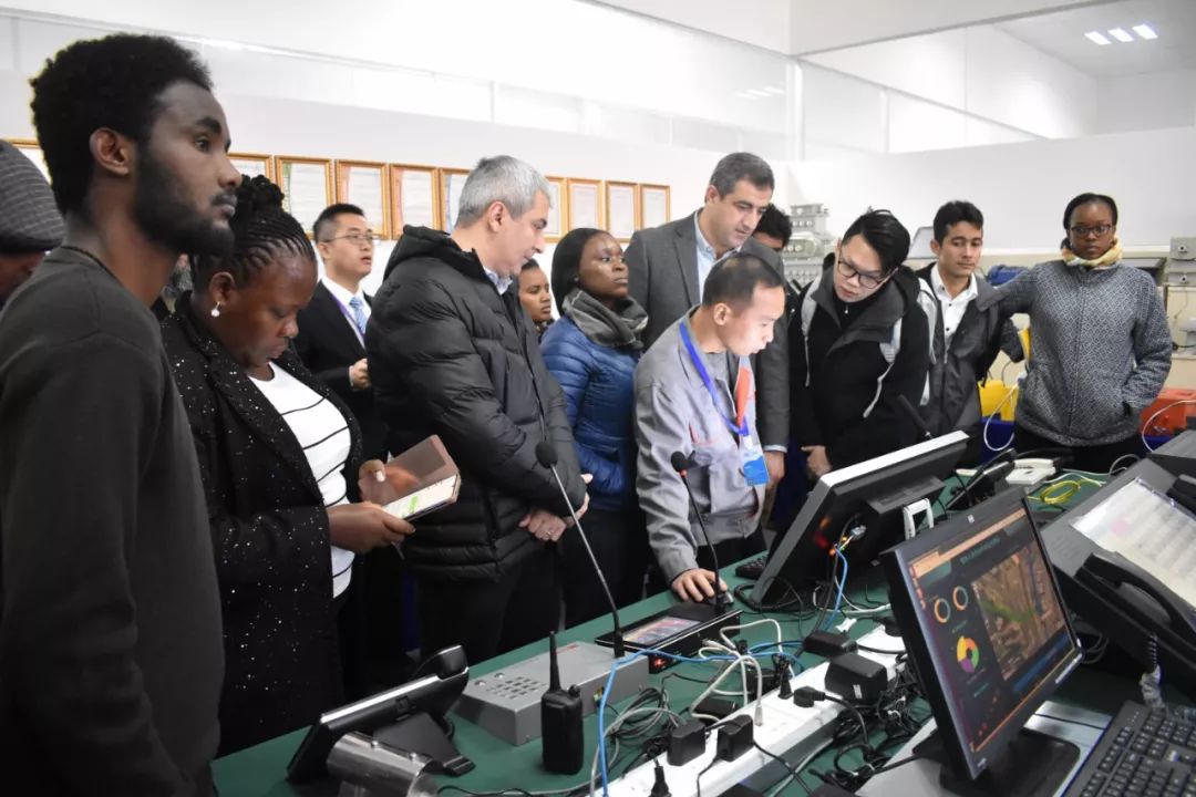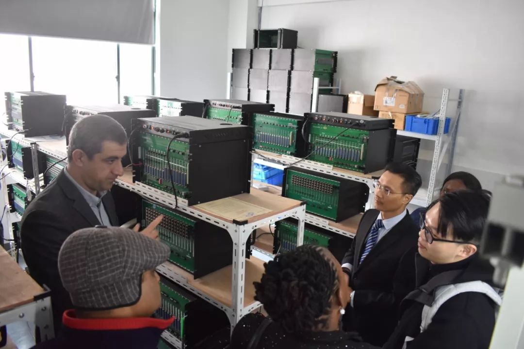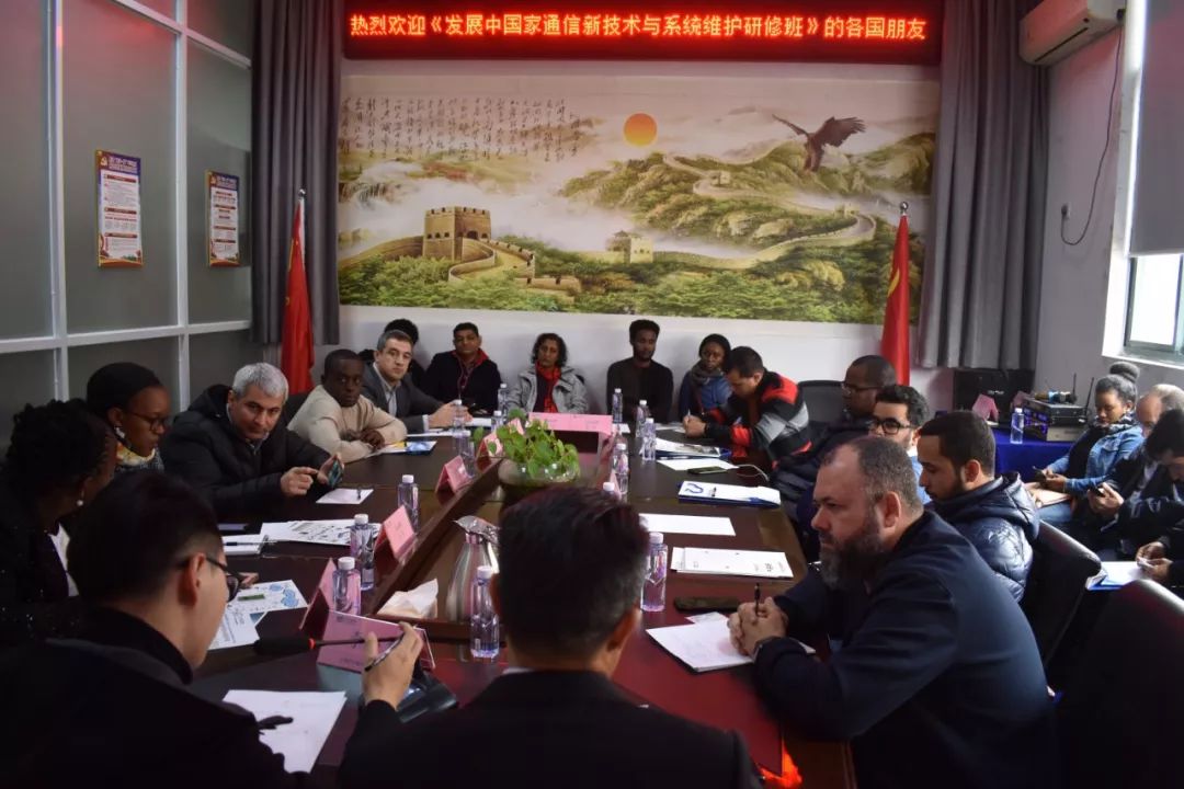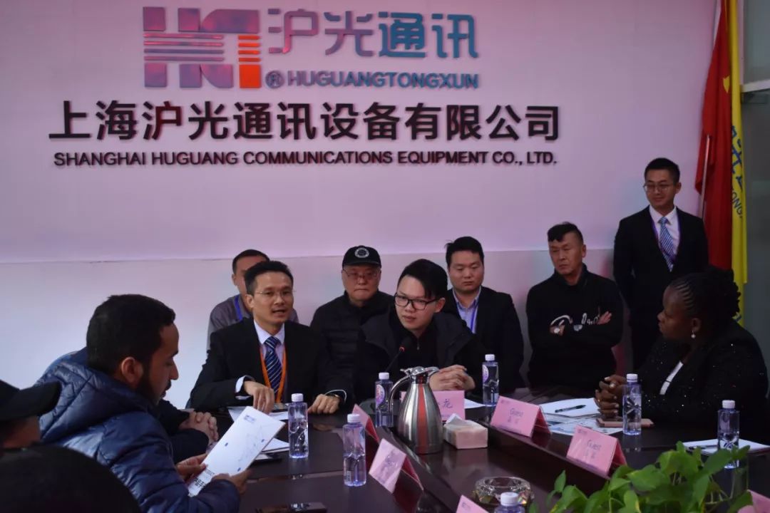 參觀了展示廳和生產(chǎn)車間后,雙方在一號會議室進行了友好座談交流。參加技術(shù)交流座談會的人員有:國家商務(wù)部主辦的《2019發(fā)展中國家通信新技術(shù)與系統(tǒng)維護研修班(11月份上海班)》的各國朋友,協(xié)辦方相關(guān)人員,我公司總經(jīng)理,技術(shù)人員,商務(wù)人員等30余人。國外學(xué)員們通過參觀公司的生產(chǎn)狀況和交流介紹,進一步了解了公司的綜合實力,雙方就未來的合作事宜進行溝通,國外學(xué)員表達(dá)了強烈的合作意愿,希望以“一帶一路”倡議為契機,精誠合作,互利共贏,攜手共創(chuàng)美好未來。