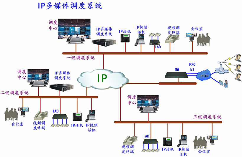 多級調(diào)度系統(tǒng)可實(shí)現(xiàn)“語音調(diào)度+廣播調(diào)度+視頻調(diào)度+視頻會議+視頻監(jiān)控+桌面觸摸屏多媒體調(diào)度臺” 整體解決方案,系統(tǒng)簡介如下: