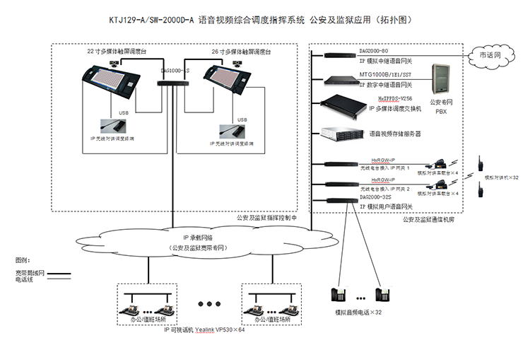 2.系統(tǒng)組成結(jié)構(gòu): 系統(tǒng)主要由通信控制主機(jī)、寬帶交換機(jī)、多種接入網(wǎng)關(guān)、多種通信終端組成。