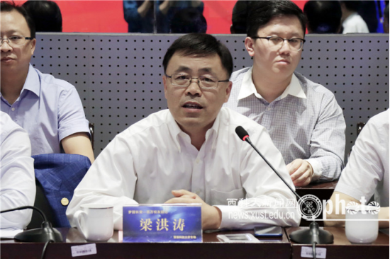 校友代表、漢能控股集團常務(wù)副總裁梁洪濤做了發(fā)言,他談了自己的求學(xué)創(chuàng)業(yè)經(jīng)歷,分享了創(chuàng)業(yè)故事,對漢能的產(chǎn)品做了簡要介紹,感謝母校老師的培養(yǎng)和西安市委市政府的支持。表示要為母校再創(chuàng)佳績,為大西安再做貢獻,將積極響應(yīng)西安市實施百萬校友回歸計劃、大力發(fā)展校友經(jīng)濟的倡議活動,攜帶技術(shù)、資金和團隊回母校,來西安開發(fā)興業(yè)、投資創(chuàng)業(yè),構(gòu)筑西安、母校、校友的發(fā)展共同體,為建設(shè)大西安建功立業(yè)。