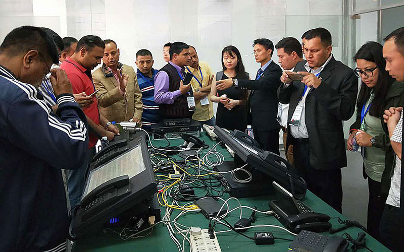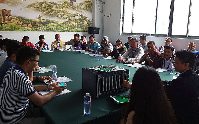 2018年5月25日,尼泊爾等國(guó)家通信部門一行,來(lái)到上海滬光通訊設(shè)備有限公司,進(jìn)行有關(guān)通訊設(shè)備領(lǐng)域的調(diào)研、考察工作,公司總理經(jīng)李小龍親自接待并主持了技術(shù)交流會(huì)議。在技術(shù)交流會(huì)上,大家互相交流溝通了應(yīng)急通信和行業(yè)通信領(lǐng)域的現(xiàn)狀、發(fā)展等,外商對(duì)我公司企業(yè)設(shè)計(jì)研發(fā),生產(chǎn)能力等實(shí)地考察后,雙方在建立合作商機(jī)制達(dá)成了初步意向。實(shí)地考察了我公司的設(shè)計(jì)研發(fā)部門,生產(chǎn)車間及產(chǎn)品展示區(qū)。此次訪問(wèn)我公司,雙方加強(qiáng)了深入了解,取得了很好的效果,并為我公司今后在“一帶一路”以及國(guó)家援助項(xiàng)目中的推動(dòng)和落實(shí)創(chuàng)造了良好條件。