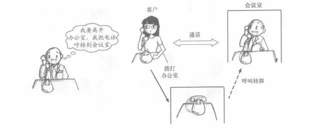 呼叫后轉(zhuǎn):你和某個客戶溝通,發(fā)現(xiàn)客戶的問題涉及到專業(yè),你無法回答時,你需要另一個更專業(yè)的同事來接聽,最好的方式就是在通話過程中把電話轉(zhuǎn)移到你同事的電話上,這就是呼叫后轉(zhuǎn)---在呼叫建立之后轉(zhuǎn)移當前的通話。