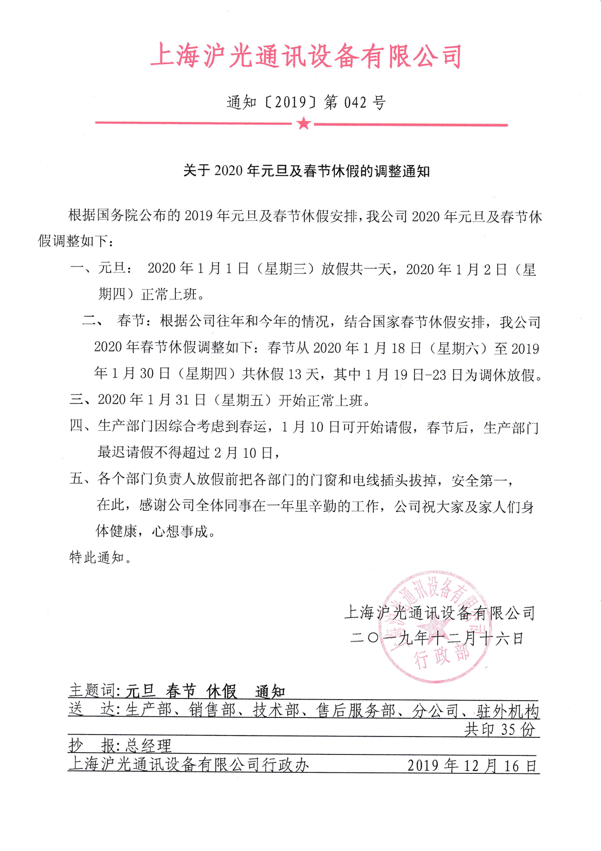 關(guān)于2020年元旦/春節(jié)休假安排的通知