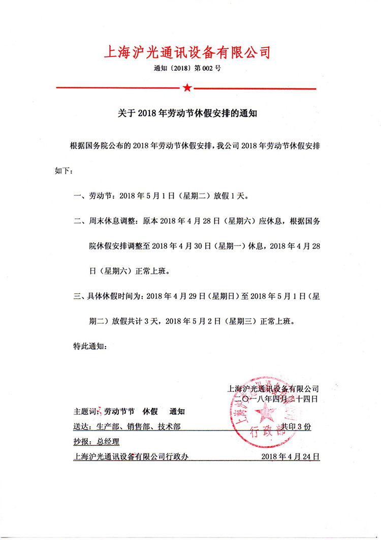 公司關(guān)于2018年勞動節(jié)休假安排的通知