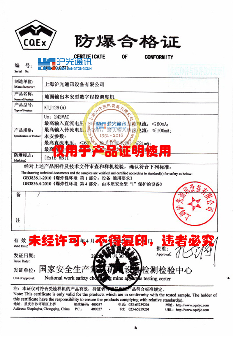 KTJ129數(shù)字調(diào)度機(jī) 防爆合格證