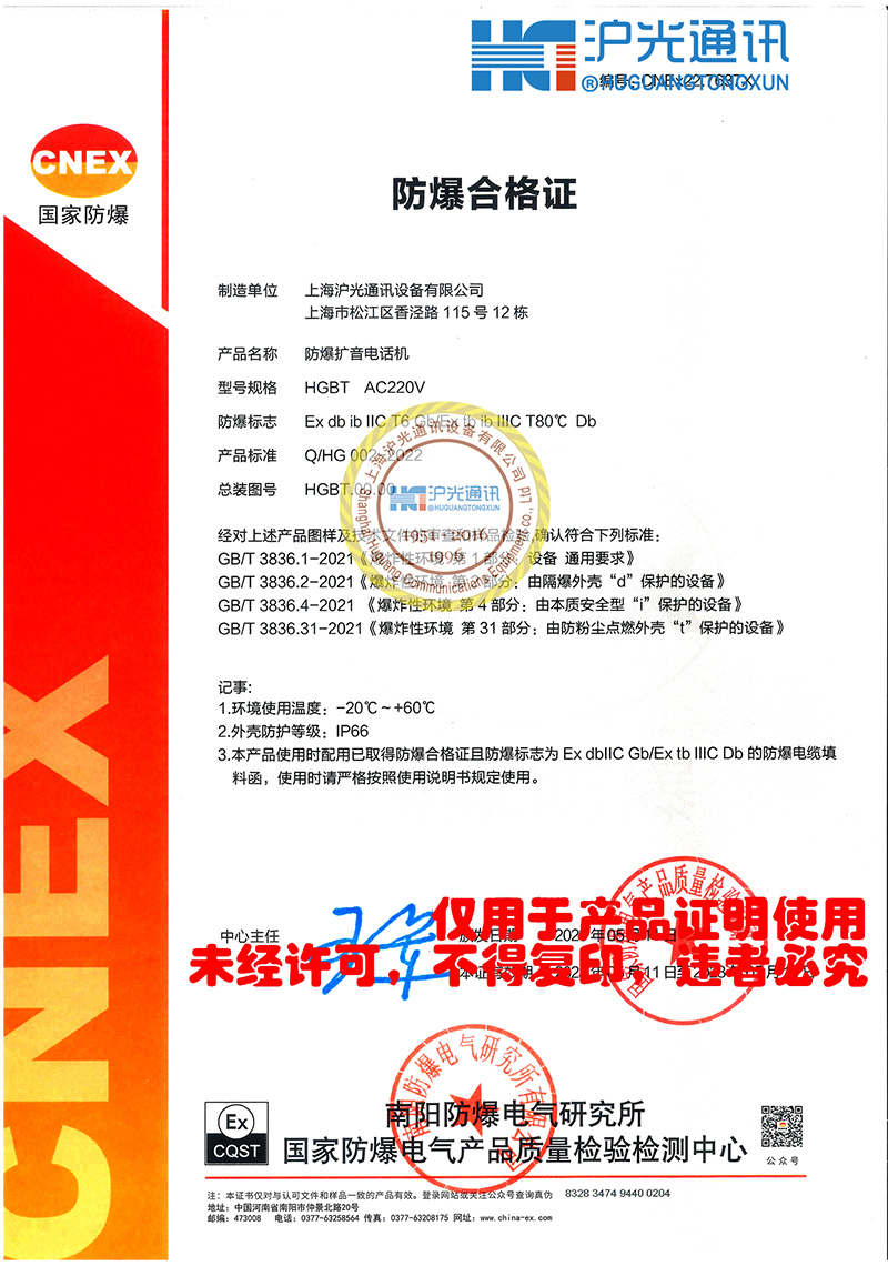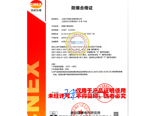 防爆擴(kuò)音電話機(jī)防爆合格證書