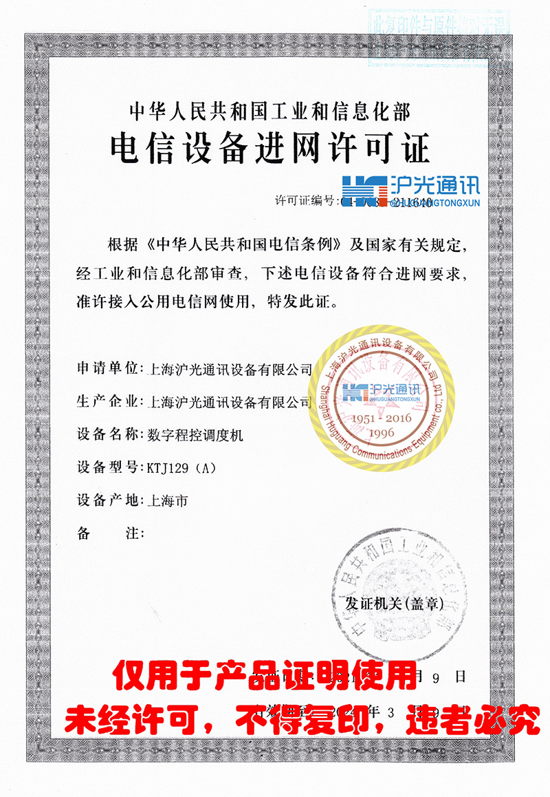 KTJ129數(shù)字程控調(diào)度機 進網(wǎng)許可證